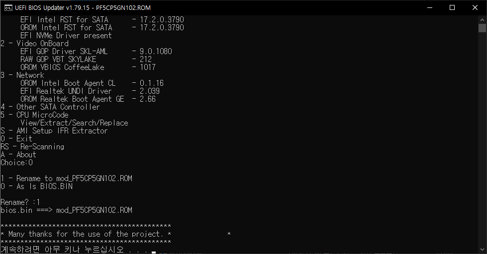 5.5 UBU파일이 위치한 폴더에 mod_바이오스파일명.ROM으로 저장된 파일을 사용하시면 됩니다.