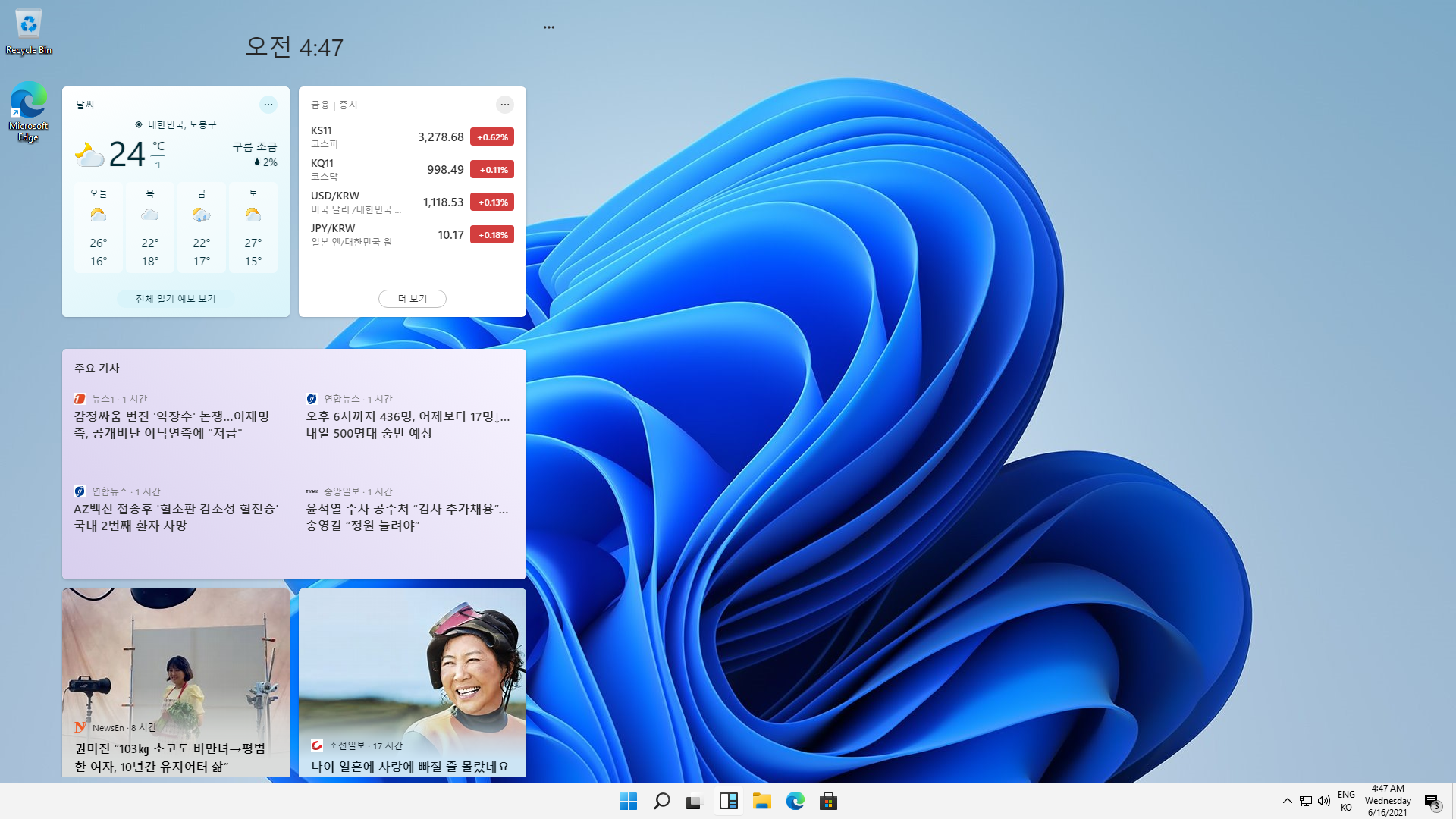 ์œ„์ ฏ์ฐฝ์ž…๋‹ˆ๋‹ค. ์ž‘์—…ํ‘œ์‹œ์ค„ ๋„ค๋ฒˆ์žฌ ์•„์ด์ฝ˜์„ ์„ ํƒํ•˜๋ฉด ๋‚˜์˜ค๋Š” ํ™”๋ฉด์ž…๋‹ˆ๋‹ค. ๊ธฐ์กด์—๋Š” ์ž‘์—…ํ‘œ์‹œ์ค„ ์šฐ์ธก์—์„œ ๋‚ ์”จ ์œ„์ ฏ๊ณผํ•จ๊ป˜ ํ™•์ธํ•  ์ˆ˜ ์žˆ์—ˆ๋Š”๋ฐ ๋ณ„๋„์˜ ํ”„๋กœ๊ทธ๋žจ ์•„์ด์ฝ˜์œผ๋กœ ๋ณ€๊ฒฝ๋˜์—ˆ์Šต๋‹ˆ๋‹ค.