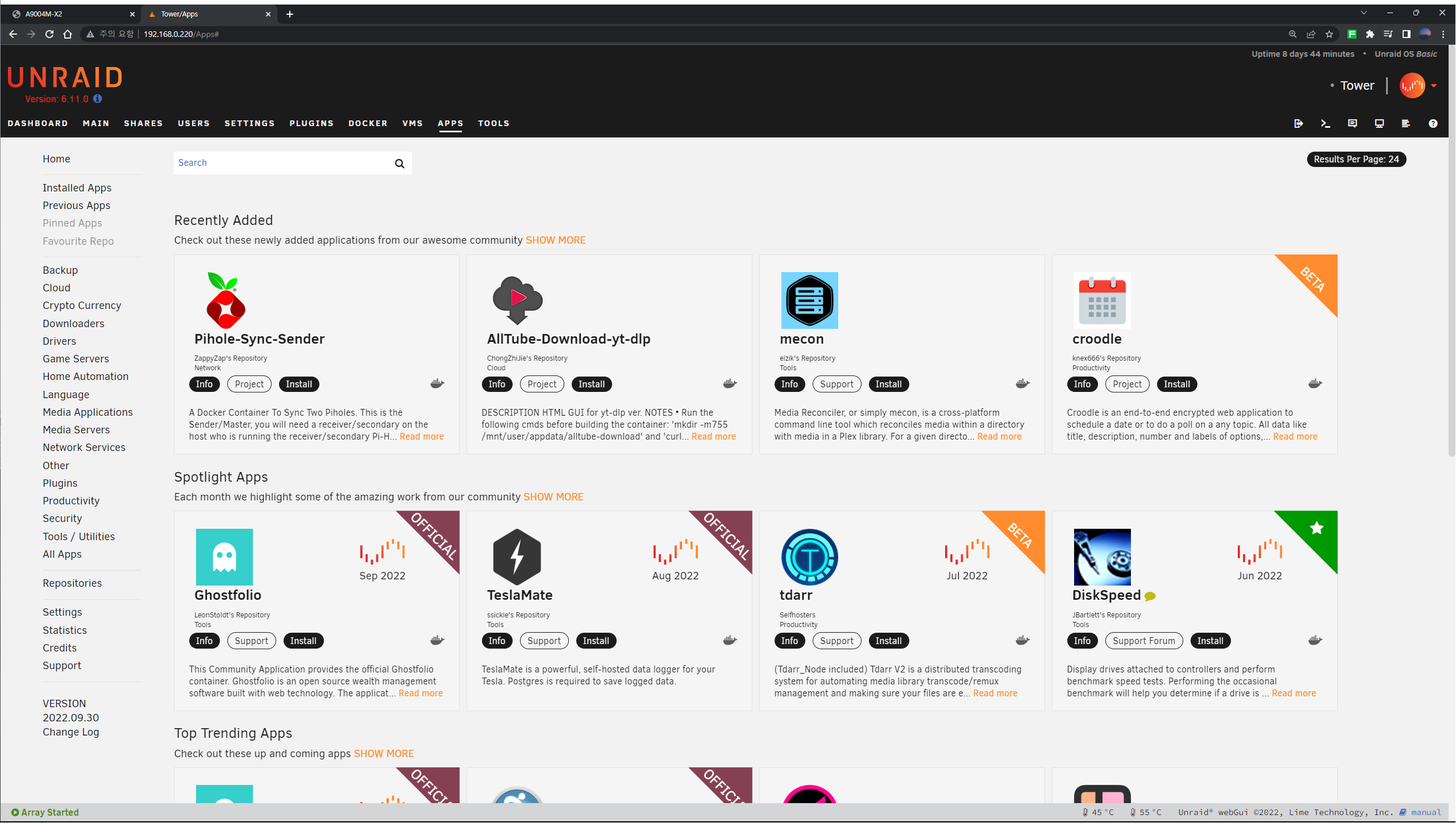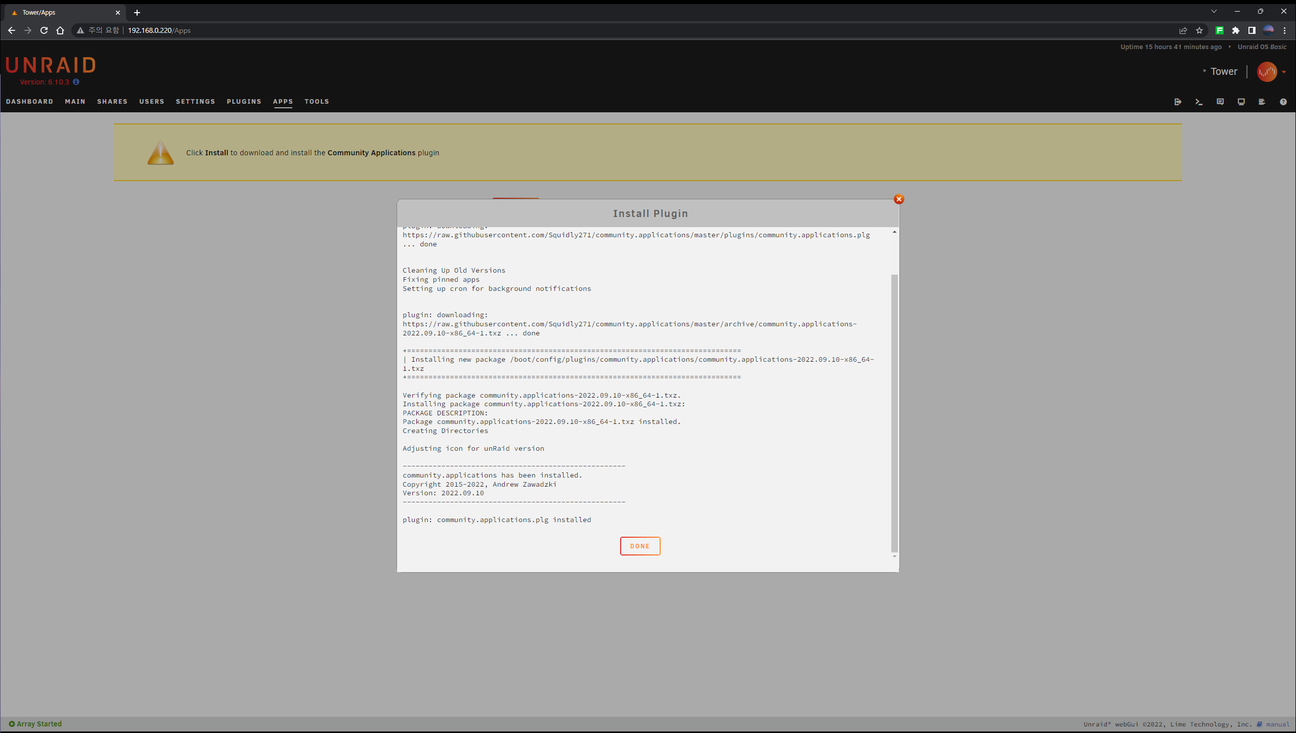 ๊ฐ์ฅ ๋จผ์ ์๋จ์ APPS ํญ์ผ๋ก ์ด๋ํ์ฌ ๋ค๋ฅธ ํ๋ฌ๊ทธ์ธ๊ณผ ๋์ปค๋ฅผ ์ค์นํ๊ธฐ ์ํ ์ปค๋ฎค๋ํฐ ์ ํ๋ฆฌ์ผ์ด์ (CA) ํ๋ฌ๊ทธ์ธ์ ์ค์นํด์ค๋ค. ์กฐ๊ธ๋ง ๊ธฐ๋ค๋ฆฌ๋ฉด ๊ธ๋ฐฉ ์๋ฃ๋๋ค.
