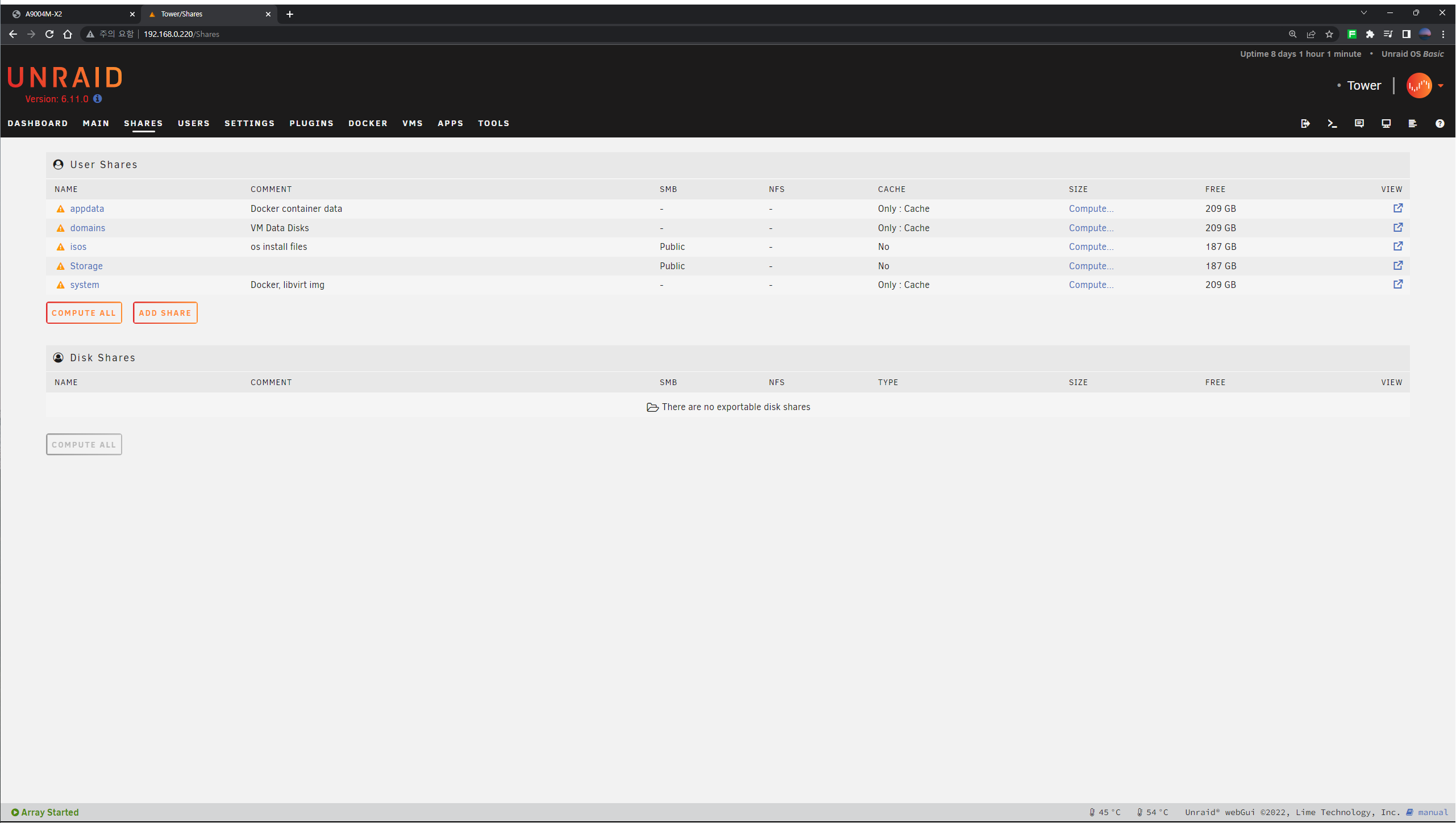 F10์ผ๋ก ์ ์ฅ์ด ์๋๋ค๋ฉด save and reboot ํน์ save and reset์ ๋๋ฅธ๋ค. - ๊ฒ์ ๋ฐฐ๊ฒฝ์ ํ๋ ์ฐฝ์ผ๋ก Unraid OS๋ฑ ๋ชฉ๋ก์ด ๋ฌ๋ค๋ฉด ๊ฑฐ์ ์ฑ๊ณต์ด๋ค.