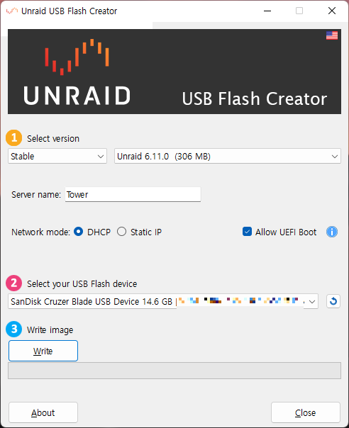 - ์ ํ๋ USB ์ด๋ฆ๊ณผ ์ฉ๋์ด ๋ง๋์ง ํ์ธํ๋ค. ์๋ฒ์ ์ด๋ฆ์ ๋ฐ๊พธ๊ณ ์ถ์ผ๋ฉด ๋ณ๊ฒฝ. ๊ทธ ์ธ์๋ ๊ฑด๋ค์ง ์๋๋ค.