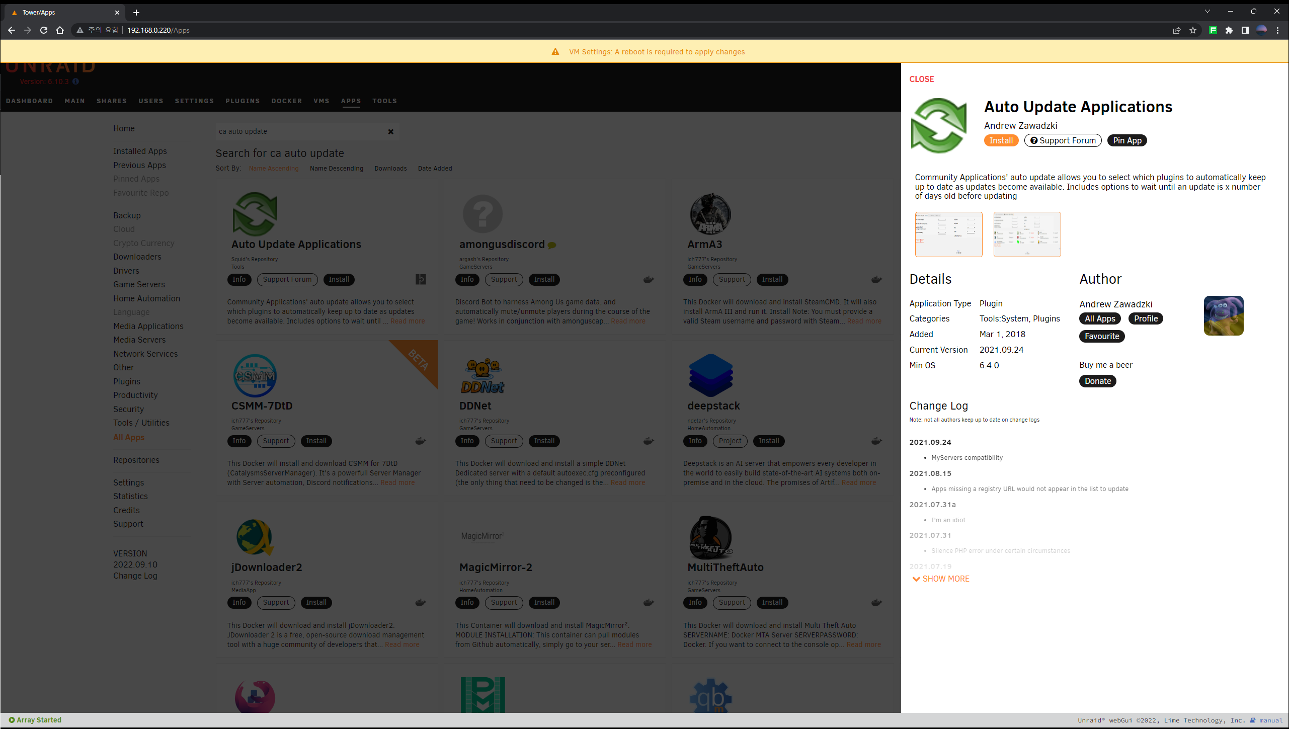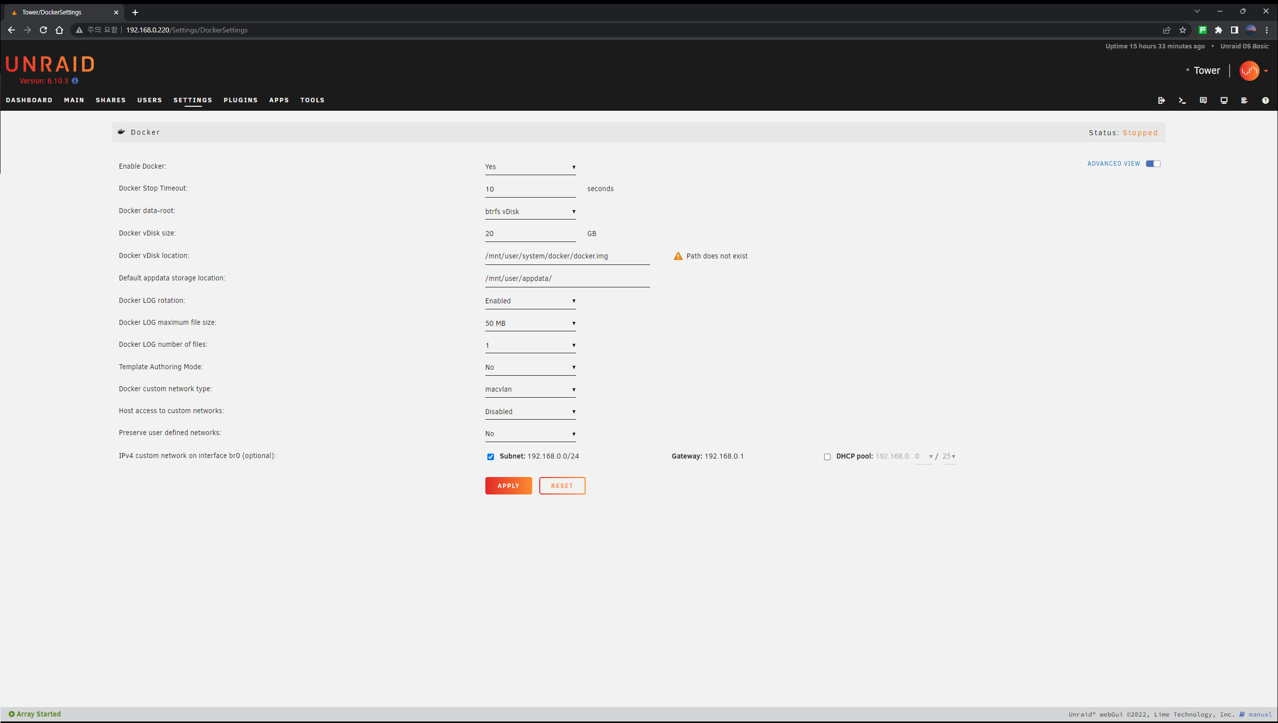 - Default appdata storage location์ /mnt/user/appdata ๋ก ์ค์ ํ๋ค.