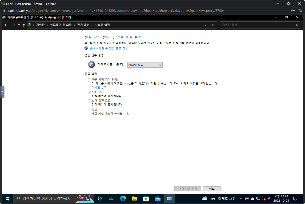 - Upon host shutdown์ Hibernate๋ก ๋ณ๊ฒฝํ๋ค. VM์ ๋์ง์๊ณ ์ธ๋ ์ด๋๋ฅผ ์ข ๋ฃํ ๋, VM ์ํ๋ฅผ ์ ์ ์ข ๋ฃ์์ ์ต๋์ ์ ๋ชจ๋๋ก ๋ฐ๊ฟ์ค ๊ฒ์ด๋ค. ์ด๋ฌ๋ฉด ํน์ ๋ชจ๋ฅผ ์ ์ ์ข ๋ฃ์๋ ์์ ํ๊ฒฝ์ ์ ์งํ ์ ์๋ค. ํ์์ ๋ฐ๋ผ ์ข ๋ฃ(Shutdown)์ผ๋ก ํด๋ ๋ฌด๋ฐฉ.