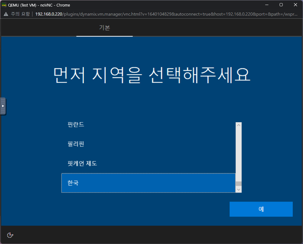 ์ ์์์ ๋ฐ๋ผ VM ์์ฑ์ ์์ฑํ๋ค๋ฉด ๋ฐ๋ก VM์ด ์คํ๋๋ค. ์์ด์ฝ์ ํด๋ฆญํด VNC๋ก ์ ์ํด์ค๋ค.