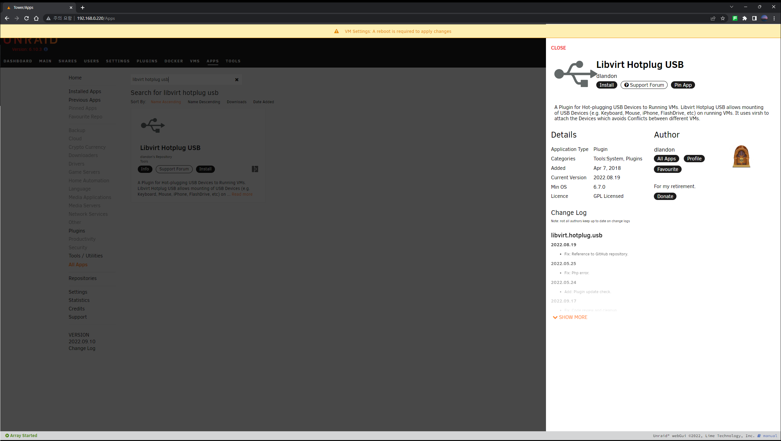 ๋๋ฒ์งธ ํ๋ฌ๊ทธ์ธ์ Libvirt Hotplug USB์ด๋ค.