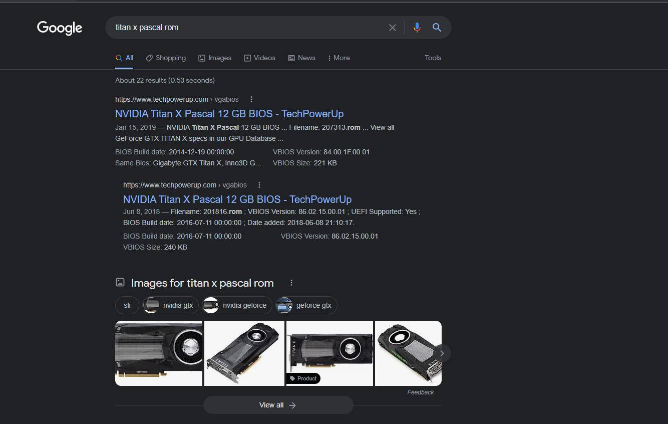 ์๋น๋์ GPU์ ๊ฒฝ์ฐ ์ํํ ํจ์ค์ฐ๋ฃจ๋ฅผ ์ํด์ GPU์ VBIOS๋ฅผ ํจ๊ป ์ง์ ํด ์ฃผ์ด์ผ ํ๋ค. ์ธํฐ๋ท์์ ๋ณธ์ธ์ ๊ทธ๋ํฝ์นด๋์ ์ต๋ํ ๋น์ทํ ์นด๋์ BIOSํ์ผ์ ๋ค์ด๋ก๋ ํ ํ ์ฝ๊ฐ์ ์์ ์์ ์ด ํ์ํ๋ค.