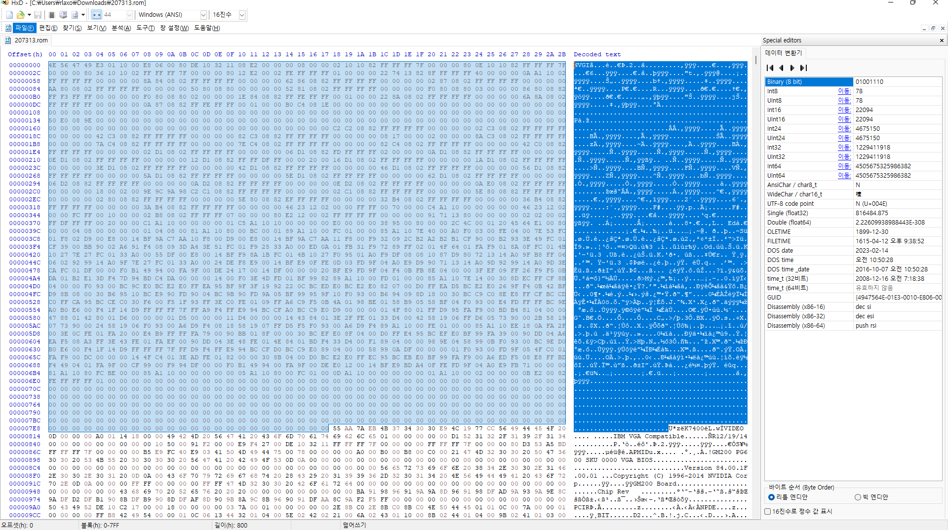 HxD๋ฅผ ์ค๋นํ๋ค. ๋ค์ด๋ก๋๋ ์ฌ๊ธฐ์์ ๊ฐ๋ฅํ๋ค. HxD๋ฅผ ์ด์ฉํด ๋ค์ด๋ก๋ ํ ๋ฐ์ด์ค์ค ํ์ผ์ ์ด์ด์ค๋ค. ๋ฌด์จ ๋ง์ธ์ง ๋ชจ๋ฅผ ์ ์ ์๋ ์ซ์๊ฐ ๋ณด์ผํ ๋ฐ ๊ฒ์ ๊ธฐ๋ฅ์ ์ด์ฉํ์ฌ 55 AA 7A EB 4B 37 ๋ถ๋ถ์ ์ฐพ์์ค๋ค. ์๋๋ฉด ๋จ์ํ ์คํฌ๋กค์ ๋ด๋ฆฌ๋ค ๋ณด๋ฉด ์ค๊ฐ์ ๋น ๋ถ๋ถ์ด ๋ง๋ค๊ฐ ๋ค์ ์์๋๋ ๊ตฌ๊ฐ์ด ์๋ค.