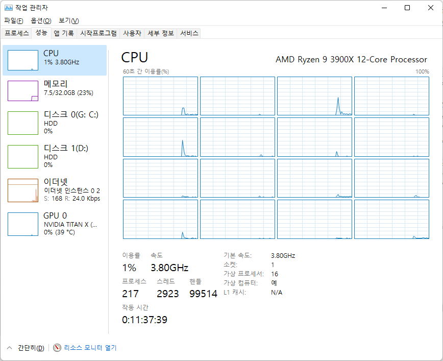 ์ฐ์ธก์๋จ์ ๋ชจ๋ํฐ ์์ด์ฝ์ ํด๋ฆญํ๋ฉด ์์คํ ์ ๋ณด๊ฐ ๋์จ๋ค.