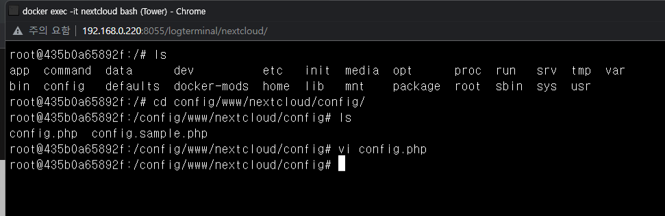 nextcloud์ ์ค์ ํ์ผ์ /config/www/nextcloud/config/ ์ ์์นํด ์๋ค.