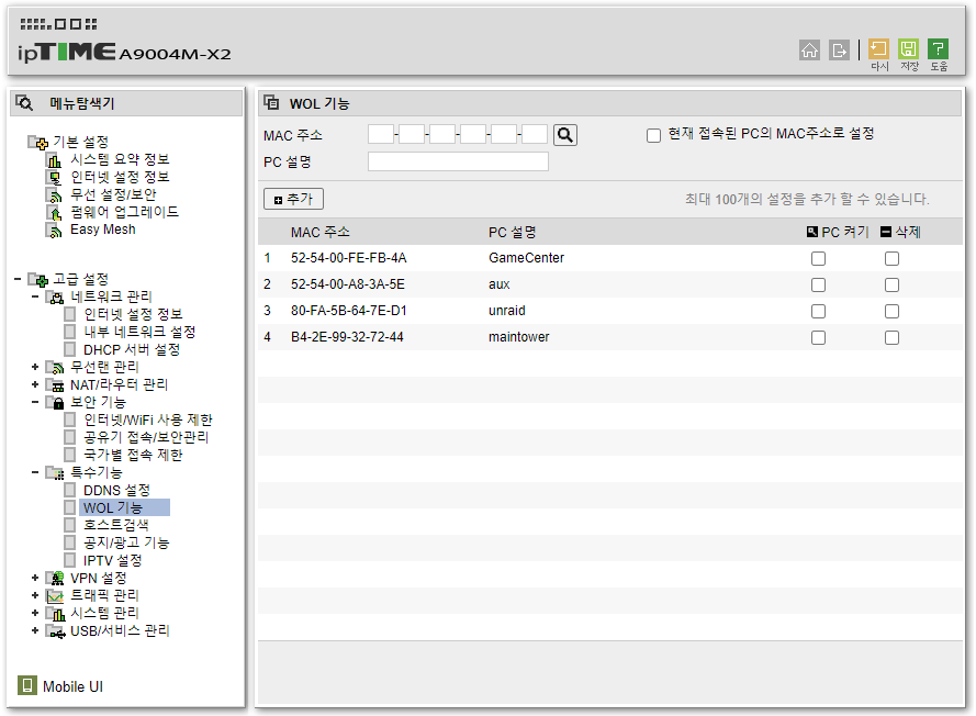 [ํน์๊ธฐ๋ฅ - WOL๊ธฐ๋ฅ]์ ๋ค์ด๊ฐ MAC์ฃผ์์ PC ์ค๋ช ์ ์ ๊ณ ์ ์ฅ.