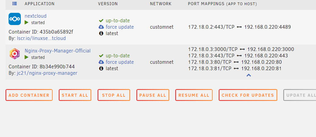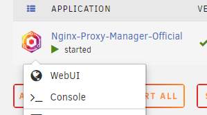 ๋ค์ด๋ก๋๊ฐ ์๋ฃ๋๋ฉด DOCKERํญ์์ NPM์ปจํ ์ด๋๋ฅผ ํด๋ฆญํด WebUI๋ฅผ ์ด์ด์ค๋ค.