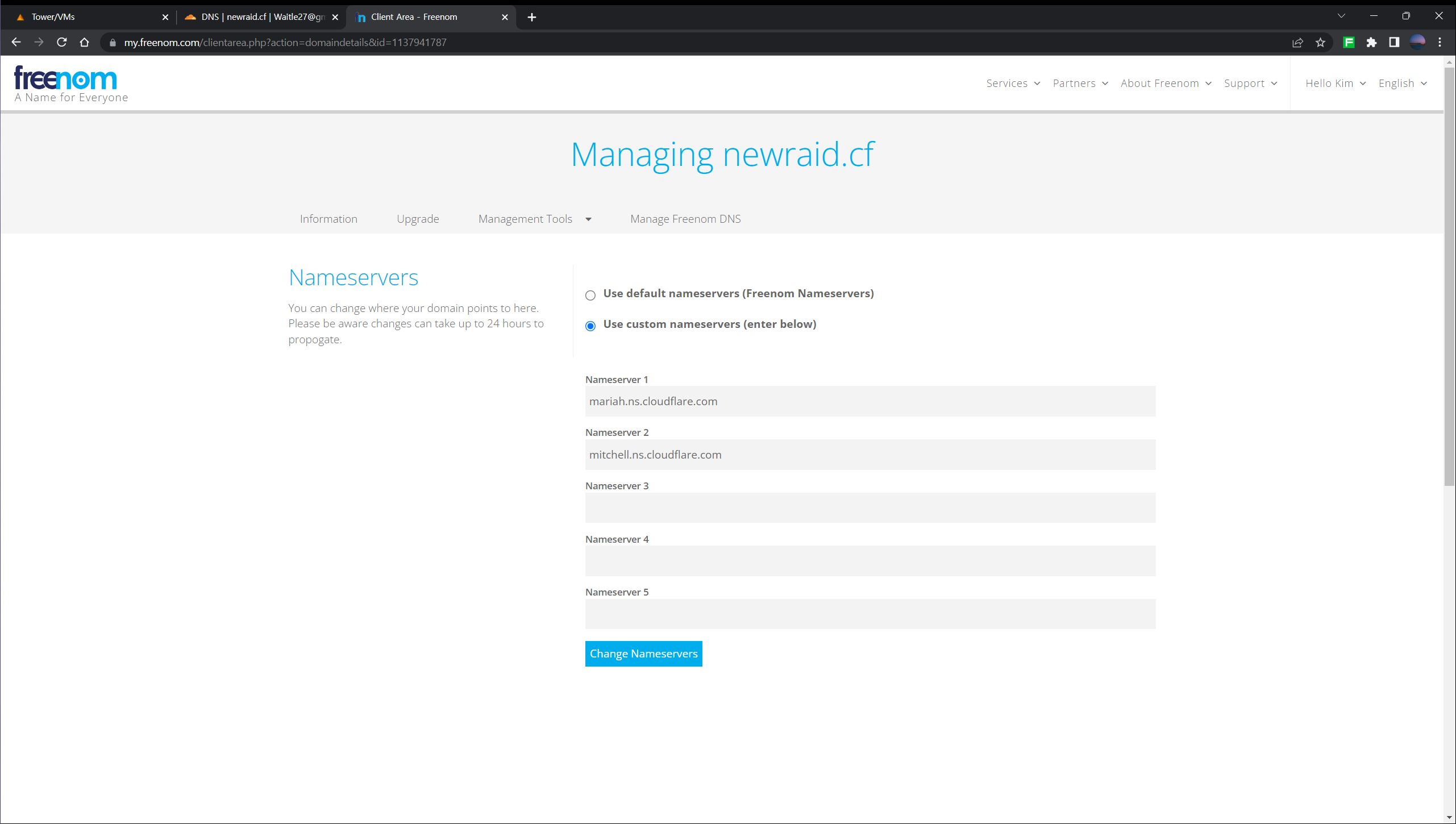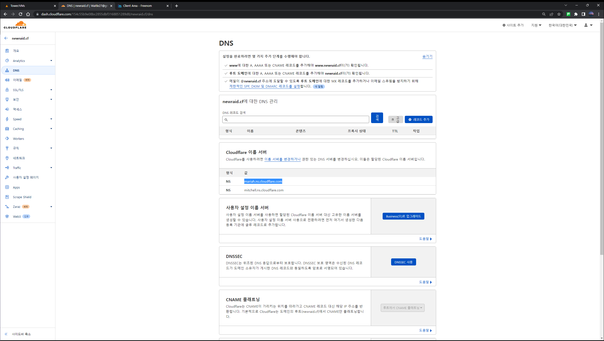 ๋ฐ๋ผ์ Cloudflare์์ ๊ด๋ฆฌํ๊ธฐ ์ํด ๋ค์์๋ฒ๋ฅผ ๋ณ๊ฒฝํด ์ฃผ์ด์ผํ๋ค.