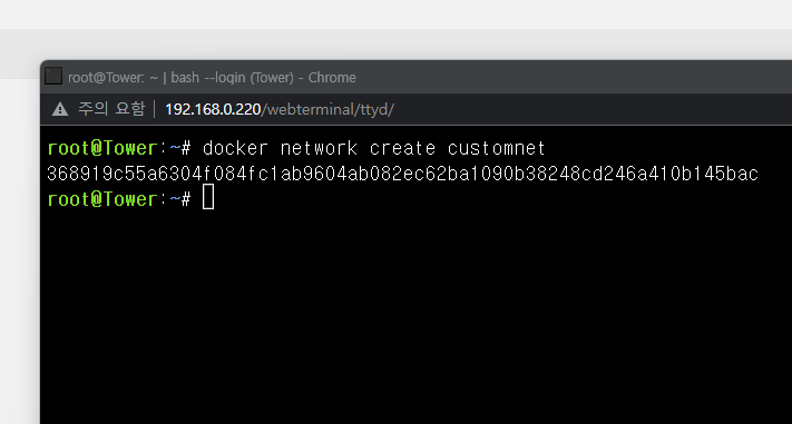 - ์๋ ์ฝ๋๋ฅผ ์ ๋ ฅํด proxynet์ด๋ผ๋ ์ด๋ฆ์ ๋คํธ์ํฌ๋ฅผ ์์ฑํ๋ค.
