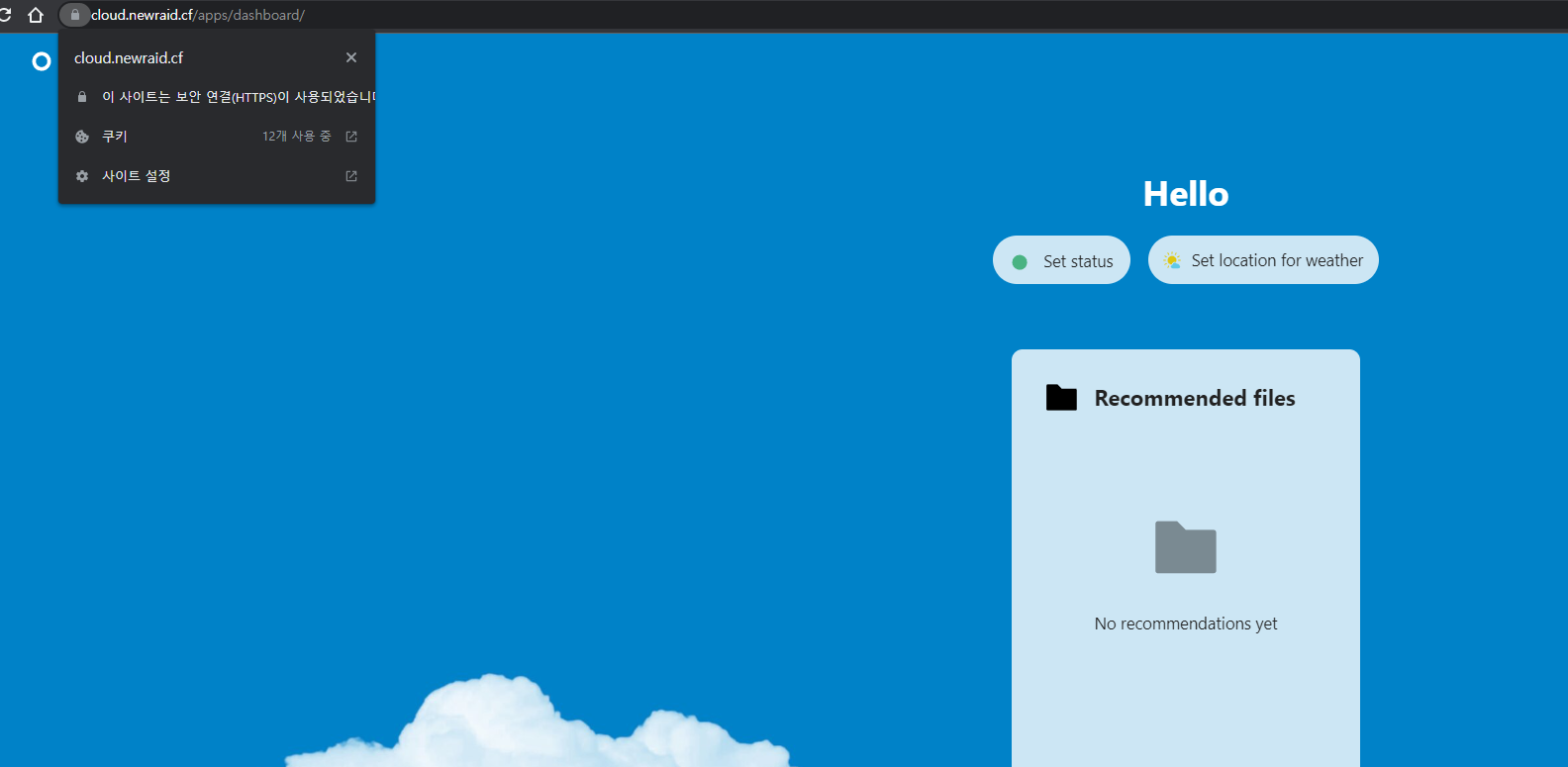 ๋นํฉํ์ง ์๊ณ ๋์ปคํญ์์ nextcloud๋ฅผ ์ ํํด ์ฝ์์ ์ด์ด์ค๋ค.