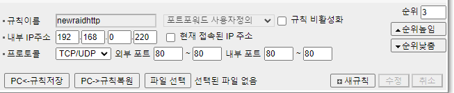 ๊ณต์ ๊ธฐ๋ 80ํฌํธ์ 443ํฌํธ๋ฅผ ์๋ฒ์ ์ฌ์คIP๋ก ๊ฐ๋ฆฌํฌ ๊ฒ์ด๋ค.