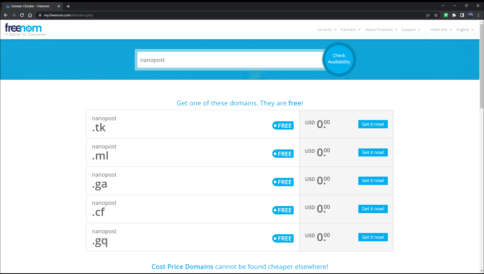 ํ์๋ ๋ฌด๋ฃ๋๋ฉ์ธ์ด ๋งํ ์ค์์ ํ์ถํ๊ธฐ์ํด freenom์ ๊ตฌ๋งคํ๋ค๊ณ ๊ฐ์ ํด๋ณด๊ฒ ๋ค.