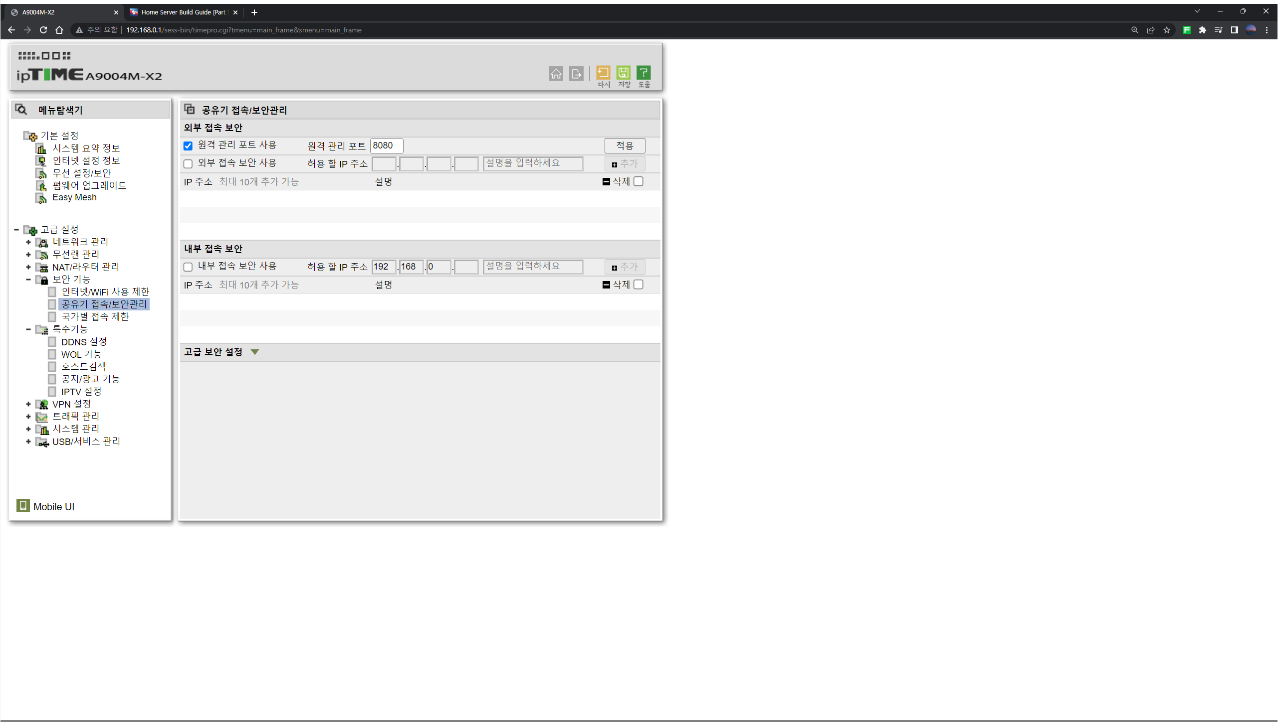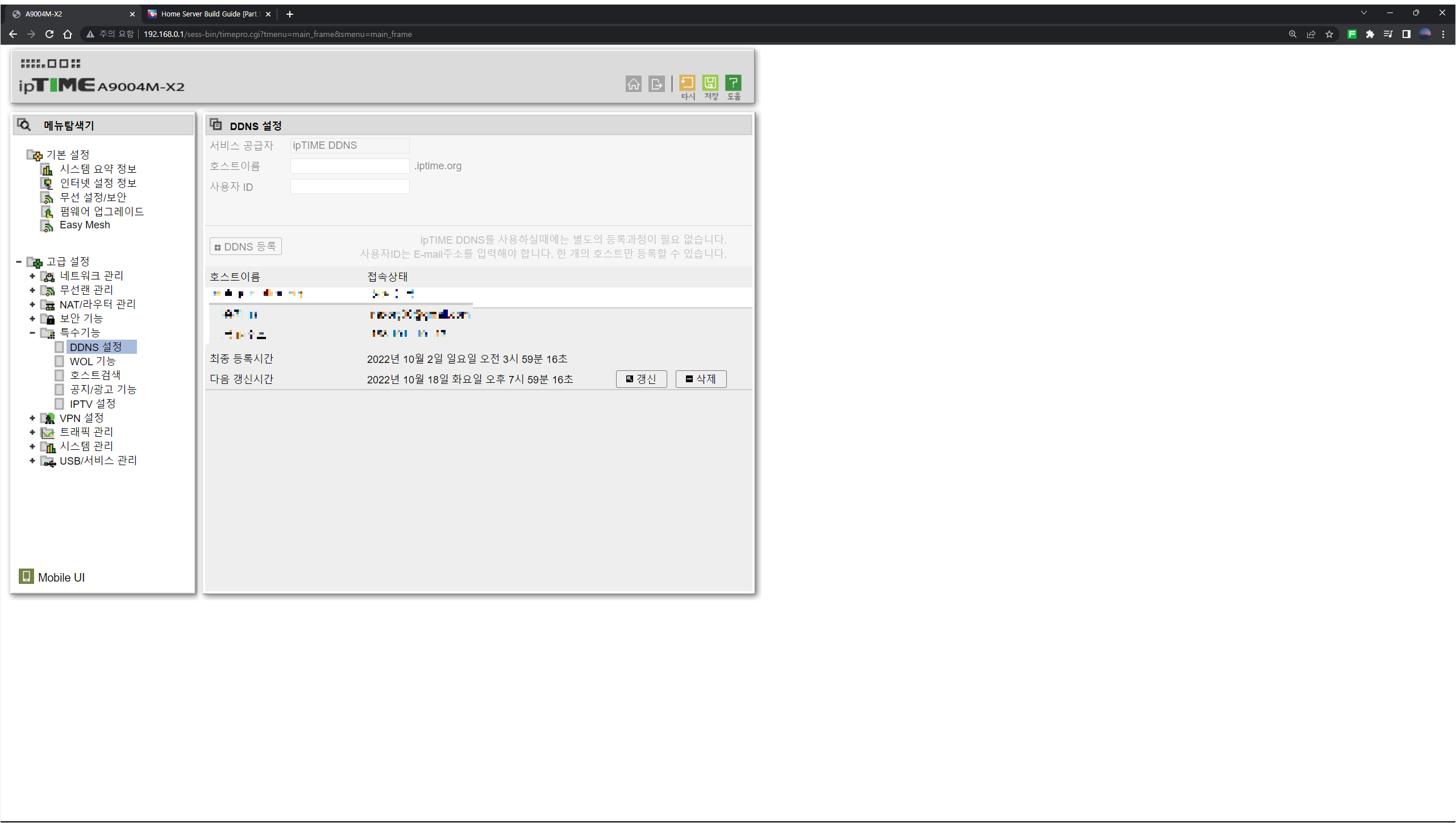 ์ ์ฉ ํ์ "์ค์ ํ DDNS์ฃผ์":"์ค์ ํ ๊ด๋ฆฌํฌํธ" ๋ก ์ ์ํ๋ฉด ๊ด๋ฆฌํ์ด์ง๊ฐ ๋์จ๋ค.