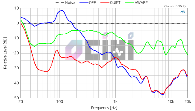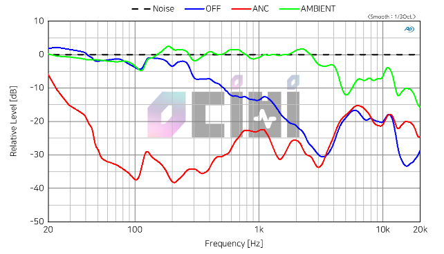 QC45๋ ๊ฑฐ์ง 1k hz ๊น์ง ๋ ธ์ด์ฆ๊ฐ ์ค์ด๋ ๋ค.