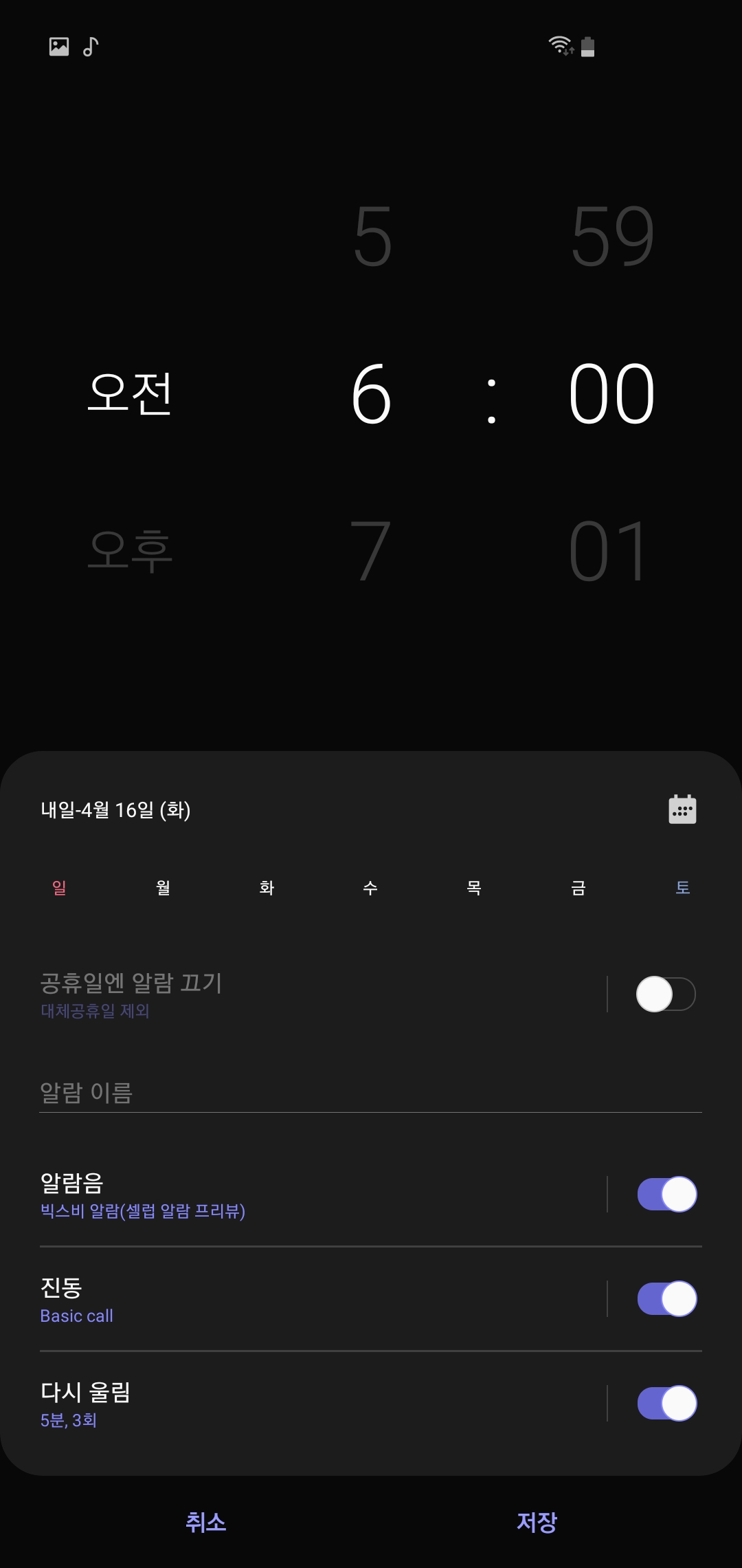 ๋จผ์ ํด๋น ๊ธฐ๋ฅ์ด ๊ธฐ๋ณธ ์๋ฆผ์์ผ๋ก ์ค์ ๋์ด์๋ ๊ฒ ๋๋ฌด ๋ถํธํฉ๋๋ค. ํ์๋ 1์๊ฐ ๋ฐ์ ์ฃผ๊ธฐ๋ก ์๊ธฐ ๋๋ฌธ์ ์ทจ์นจ ์ 7์๊ฐ 40๋ถ์ด๋ 6์๊ฐ 10๋ถ ์ฆ์์ผ๋ก ์๋์ ๋น ์ค๋น๋ ๊ตฌ๊ธ ์ด์์คํดํธ๋ฅผ ํตํด ์๋์ ๋ง์ถ๊ณ ์๊ฒ ๋ฉ๋๋ค. ์์นจ์ด ๋๋ฉด ์๋์ ์ค์ ํ ๋ ๋ณ๋ค๋ฅธ ์ถ๊ฐ ์ค์ ์ ํ์ง ์์๊ธฐ ๋๋ฌธ์ '์ ๋ฝ ์๋ ํ๋ฆฌ๋ทฐ'๊ฐ ๊ธฐ๋ณธ ์๋์์ผ๋ก ์ค์ ๋๊ฒ ๋ฉ๋๋ค. ์ ๋ ํ๊ตญ ์ฐ์๊ณ์๋ ๊ด์ฌ์ด ์์๋ฟ๋๋ฌ ๋จ์๊ฐ ๊นจ์์ฃผ๊ธฐ ๋๋ฌธ์ ๋งค์ฐ ๊ธฐ๋ถ์ด ์ธ์งข์์ง๋๋ค. ์์นจ์ ๊ธฐ๋ถ์ด ์ ์ข์ผ๋ ํ๋ฃจ ์ข ์ผ ํผ๊ณค, ์๋ฏผํ๊ฒ ๋๊ณ ๋ฅ๋ฅ ์ด ๋จ์ด์ง๋ ์๊ฐ์ ๋ญ๋นํ๊ธฐ๊น์ง ๋ฉ๋๋ค! ์์นจ์ ์ํ ์ฒ์ ๋ฃ๋ ๋จ์๊ฐ ๊นจ์์ค๋ค๊ณ ์๊ฐํด ๋ณด์ธ์.. ๋ค๋ฅธ ์๋ ์๋ฆฌ๋ ์๋๊ณ ๋ฌผ์ผ์๋ฉด... ์์ต๋๋ค.